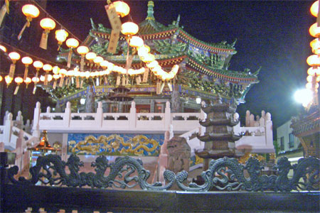 宴果てて、元町からニューグランドホテルのバー・シーガーディアンへ向かう途中の媽祖廟でみかけたランタン飾りです。媽祖廟は築後間が無く、新しい観光の的になっているとか。