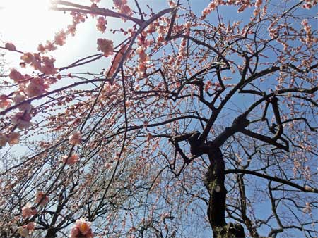 予想はハズレ、それも良い方にはずれて、偕楽園の梅は早咲き遅咲きがあるものの全体として八分くらい、まだまだ見頃は続いていました。 朝早い園内は人影少なく、晴れて風がないこともあって、最寄りバス停で降りて園に近づくにつれてほのかに梅の香りが漂ってきます。