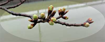 春分過ぎの今朝も氷雨が降っている。それでも桜蕾は膨らみを増した。